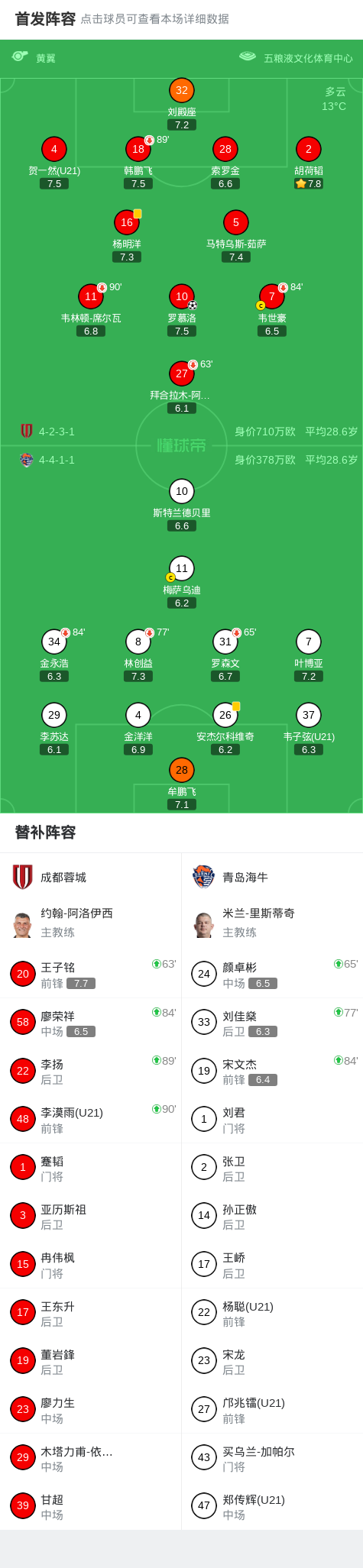 北京时间3月15日中国足球超级联赛 联赛 第2轮,成都蓉城主场对阵青岛海牛。成都蓉城罗慕洛破门。最终比分成都蓉城 1-0 青岛海牛。